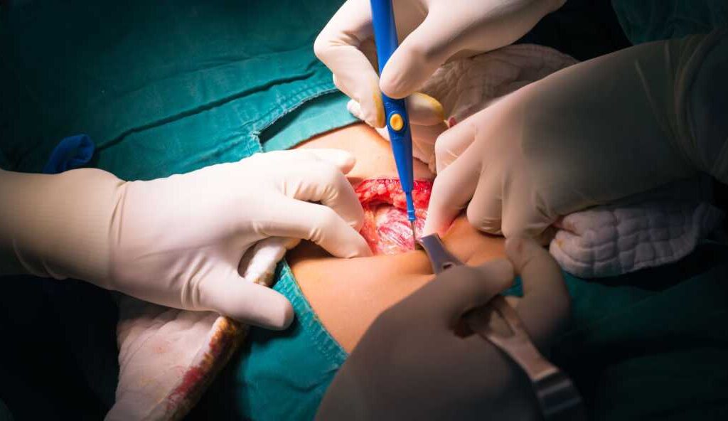 > La cirugía abierta implica una incisión más grande en el abdomen.
